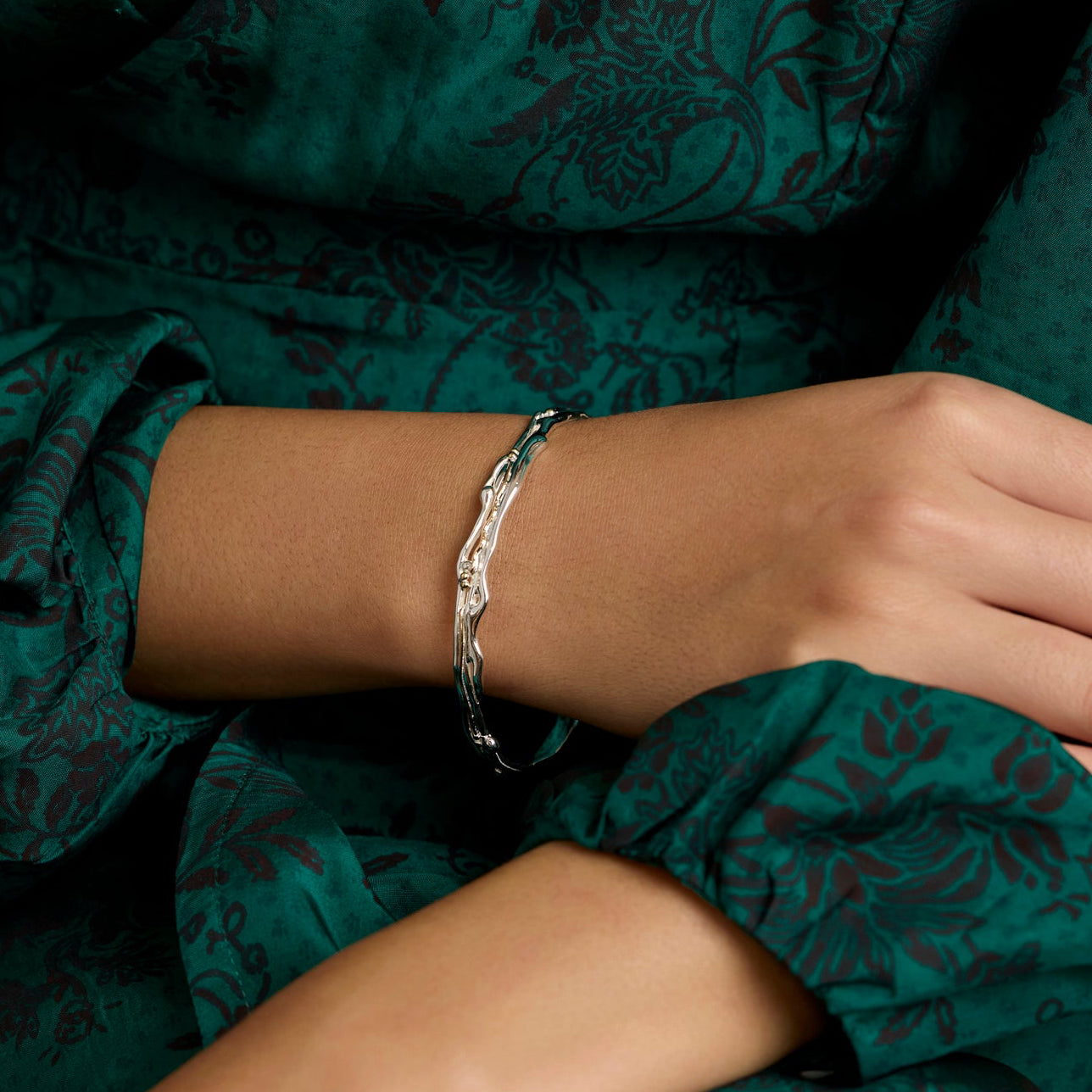 Organic Silver Bangle with Gold Details
