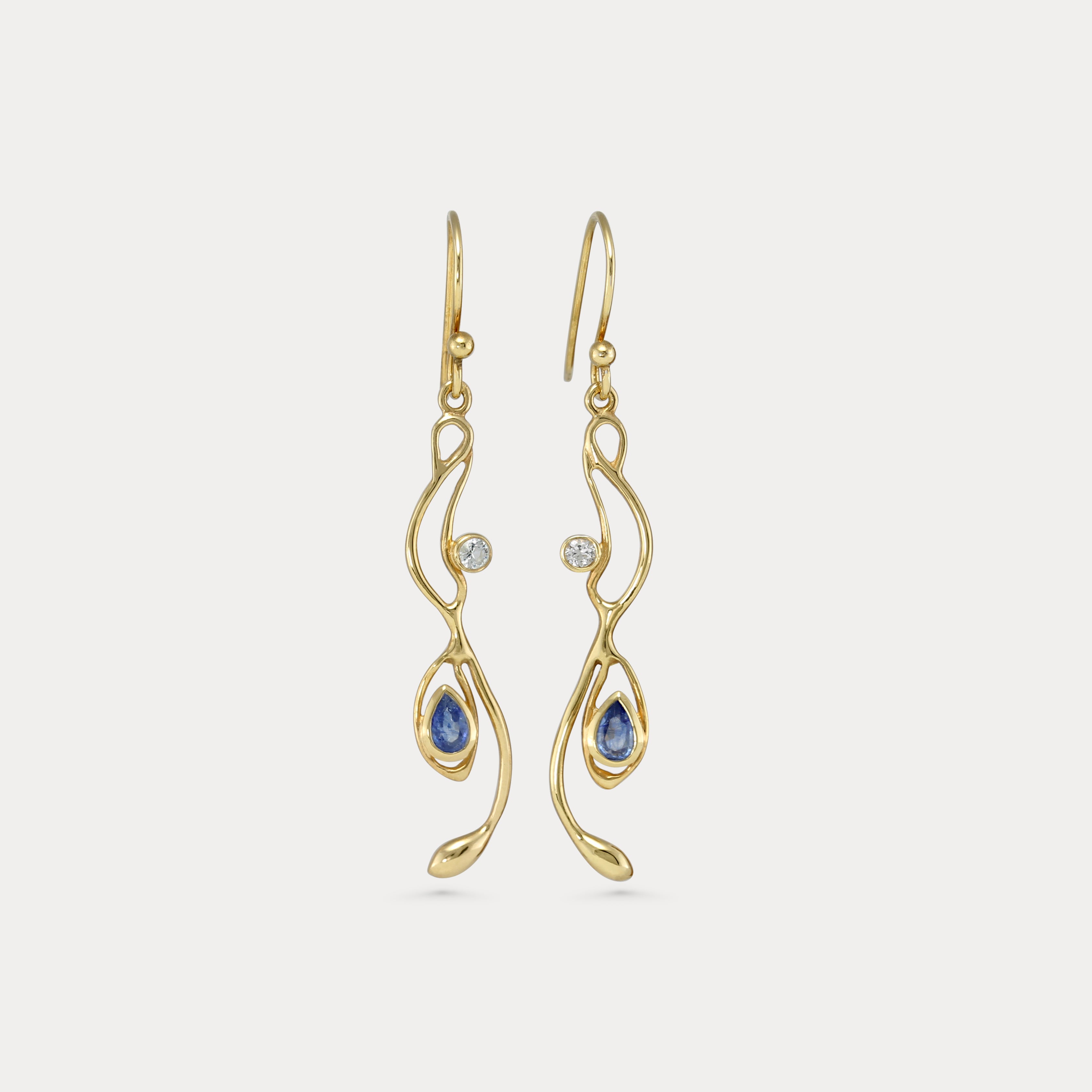 Blue Sapphire and White Topaz 18KT Gold Vermeil Drop Earrings