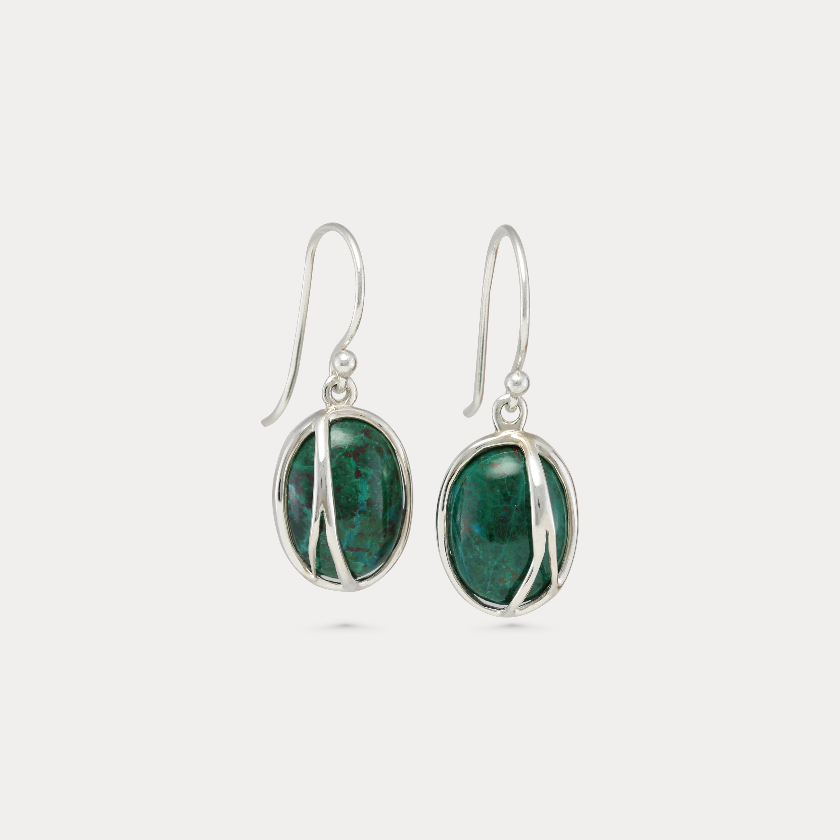 Green Chrysocolla Sterling Silver Drop Earrings