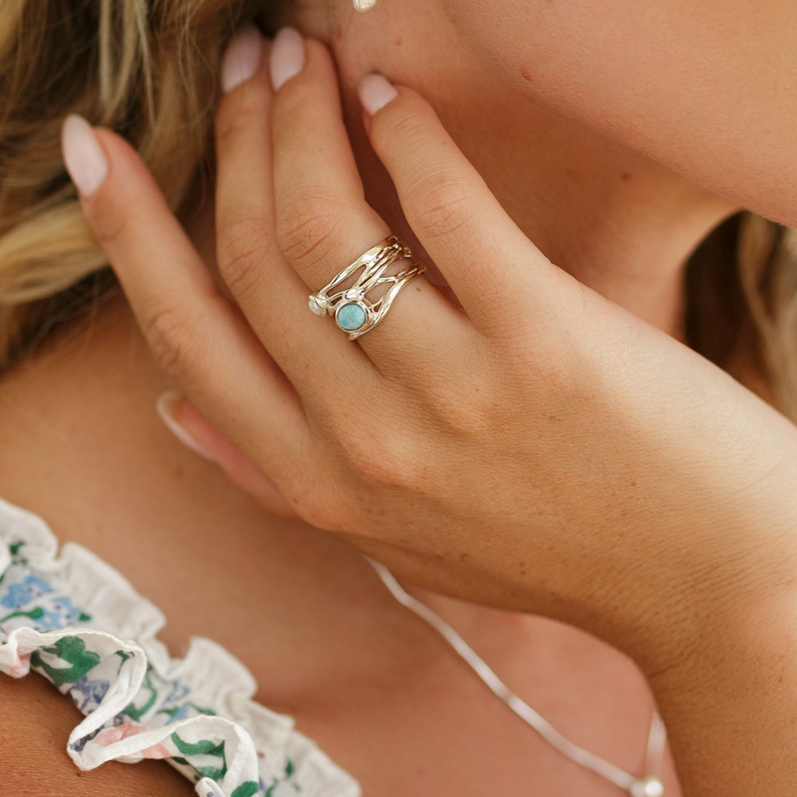 Quintet of Vibrant Blue Fire Opal Statement Ring