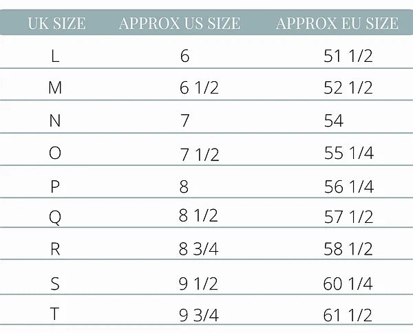 We always want you to be happy with the fit of your ring purchased with us. We recommend ordering an affordable ring sizer online or alternatively going to a local jeweller who will be able to size you. We have a few little tips below we hope will make your choice easier.