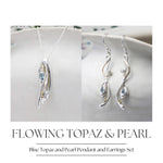 Blue Topaz and Pearl Flowing Pendant and Earrings Set