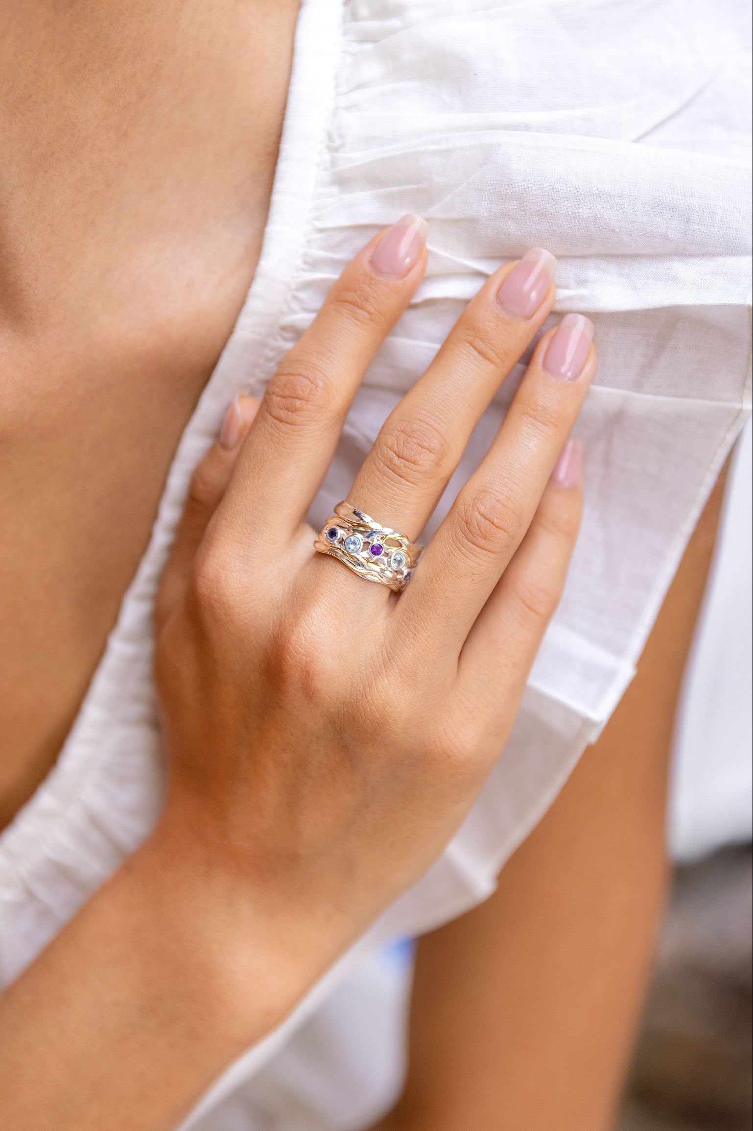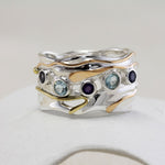 Organic Blue Topaz, Iolite, and Amethyst Statement Ring