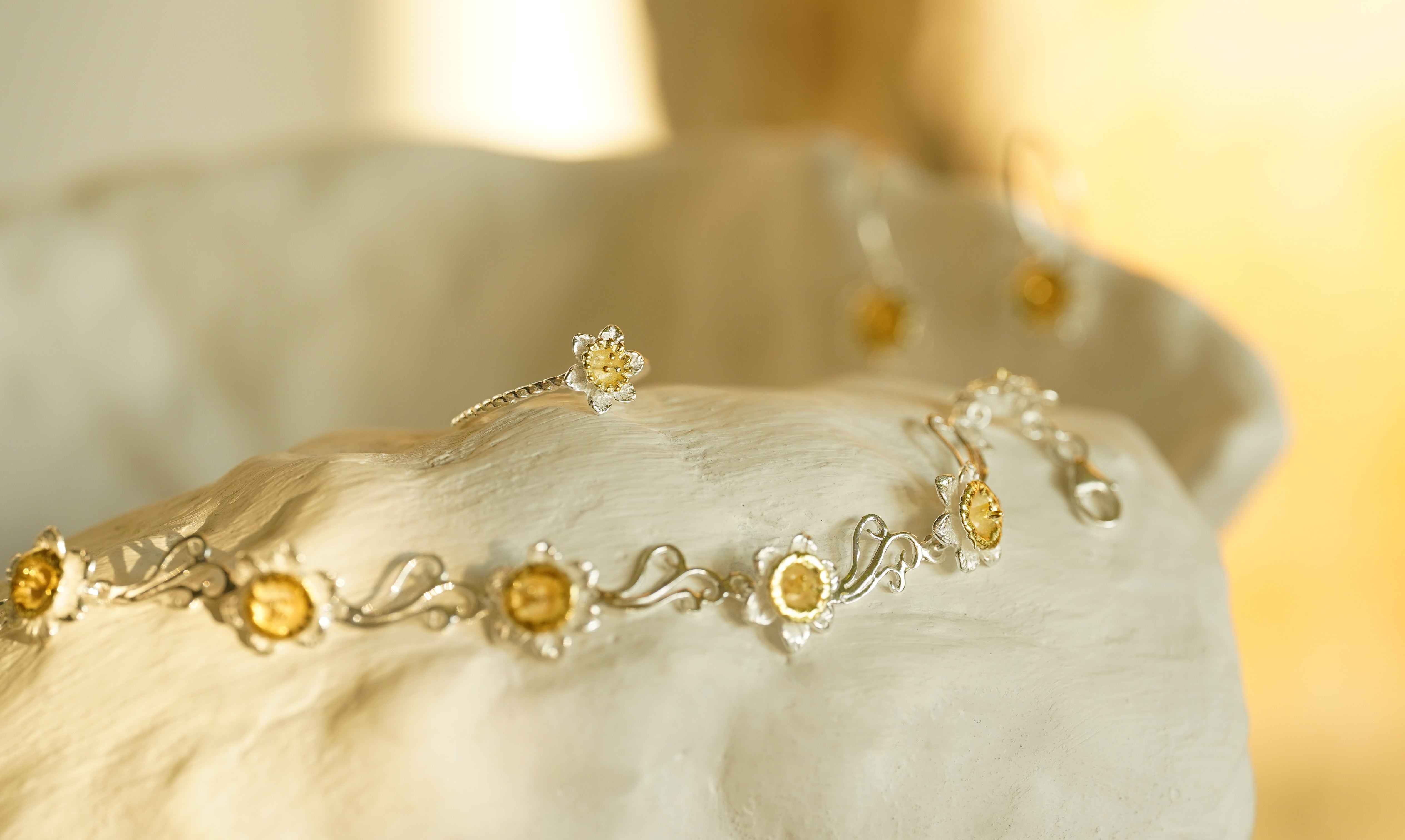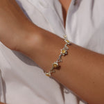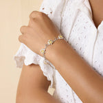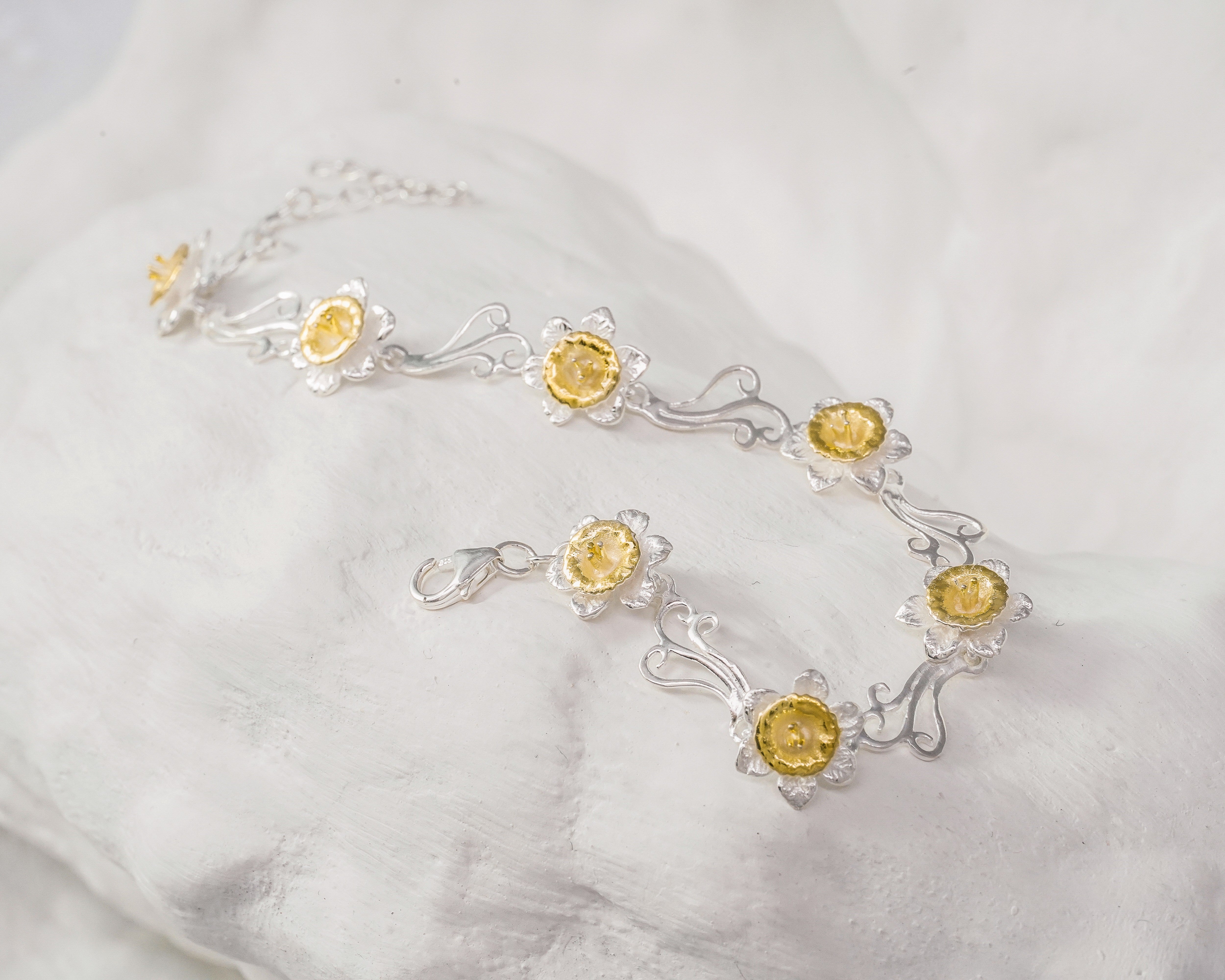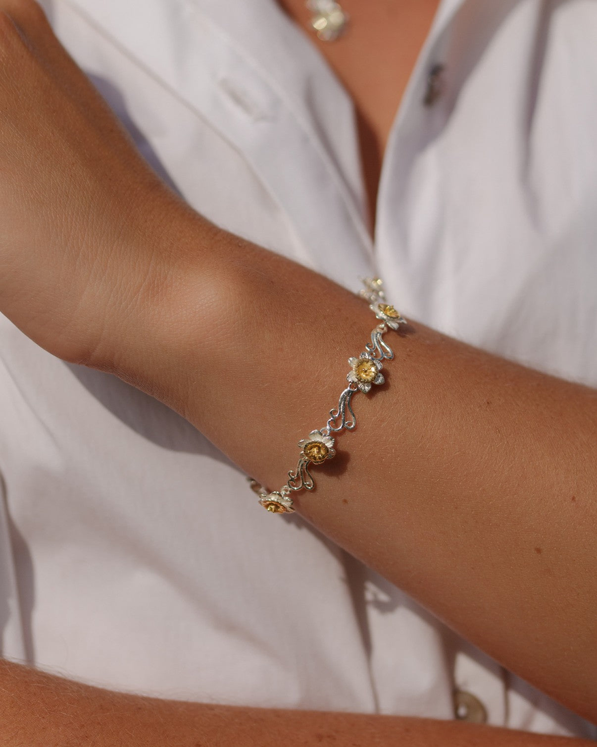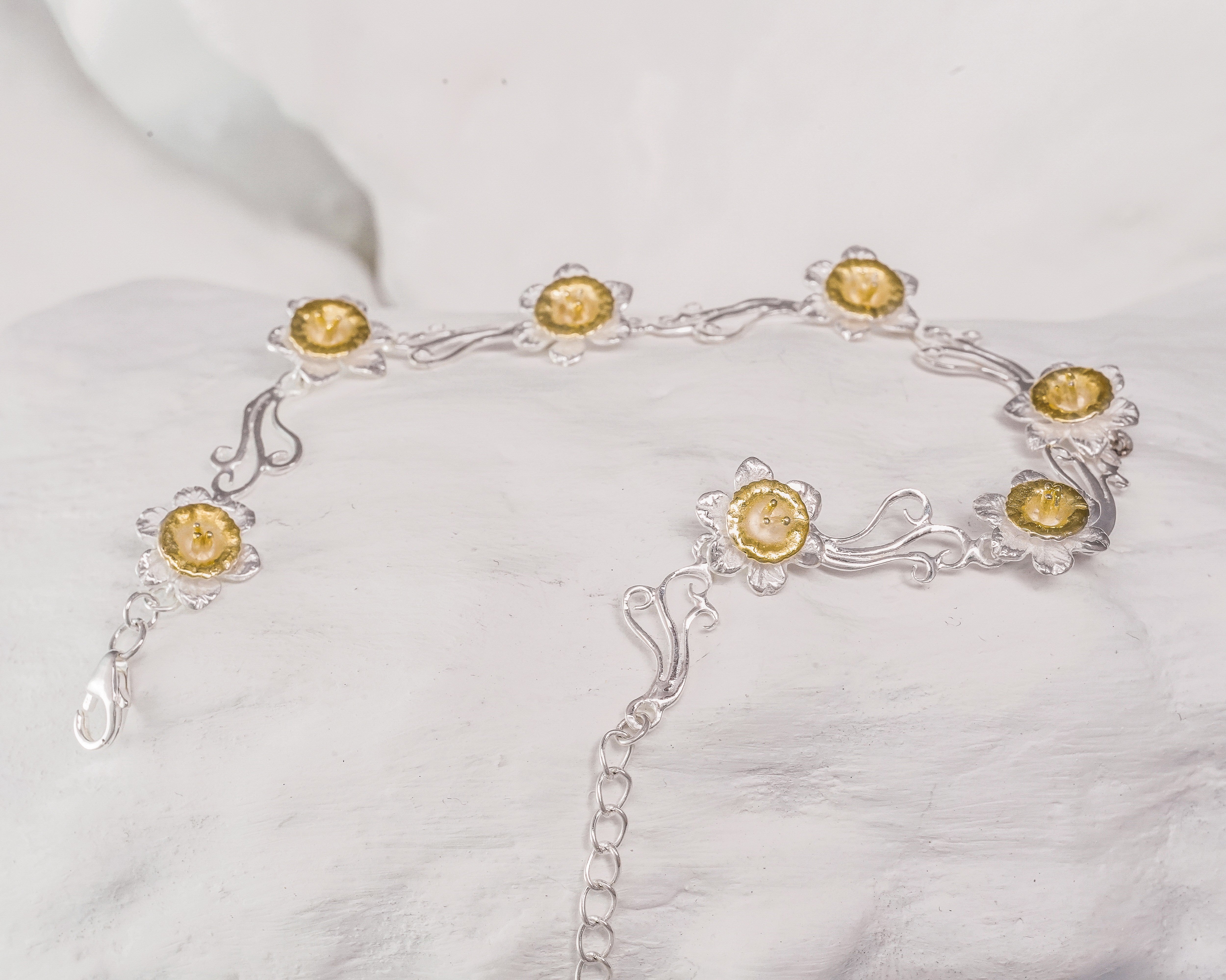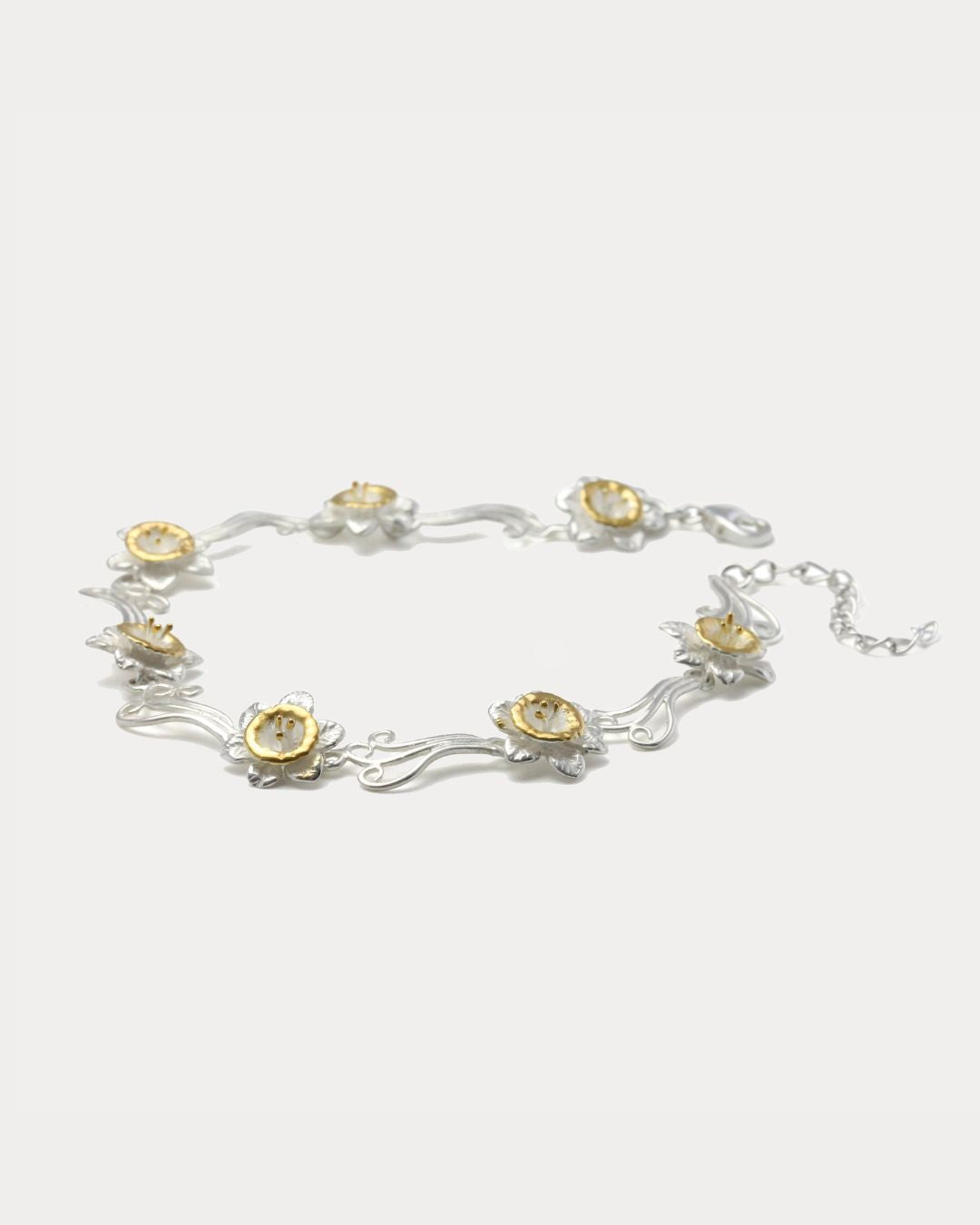Expertly handcrafted with fine details, this sterling silver bracelet of blooming daffodils is finished with 18kt gold plating.