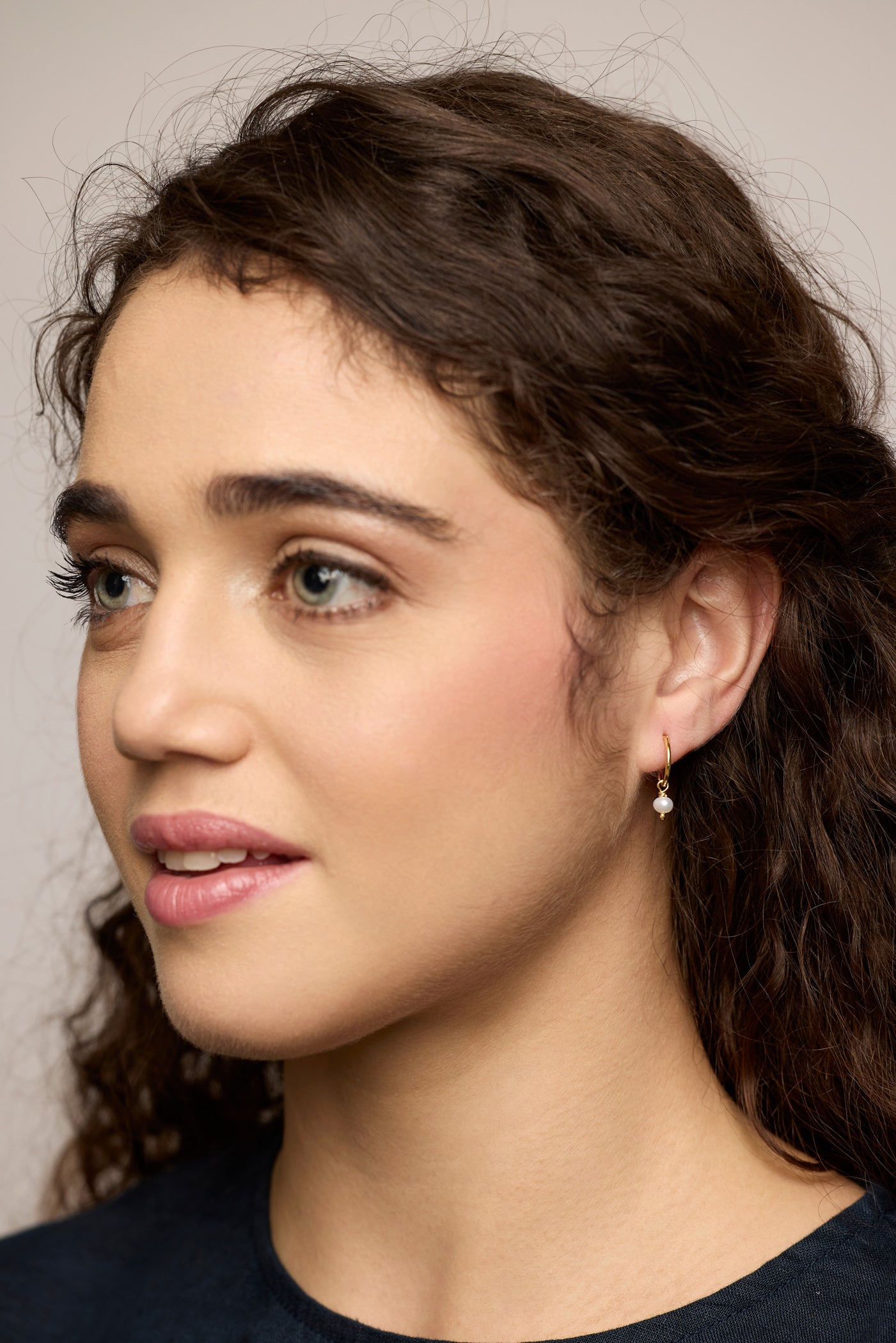 Introducing your newest jewellery box staple. These Gold Vermeil hoops have beautiful Freshwater Pearls suspended from them, in our new 'Huggie' style. They make the perfect everyday pair to stack up with your other Isla Silver favourites.