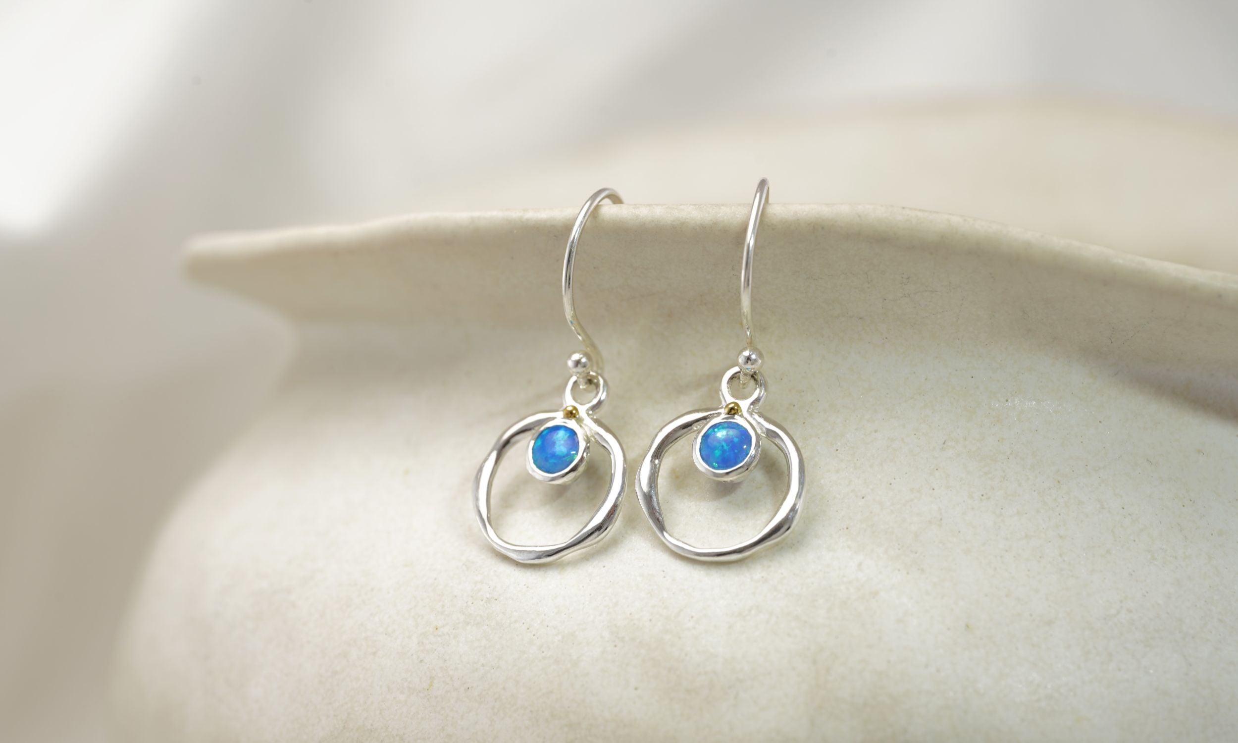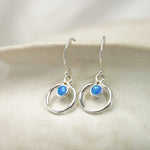 These dainty Sterling Silver drop earrings feature small, sparkling Opals inside a flowing circle of Silver. They make the perfect finishing addition to any attire, and are subtle while still adding a touch of colour.