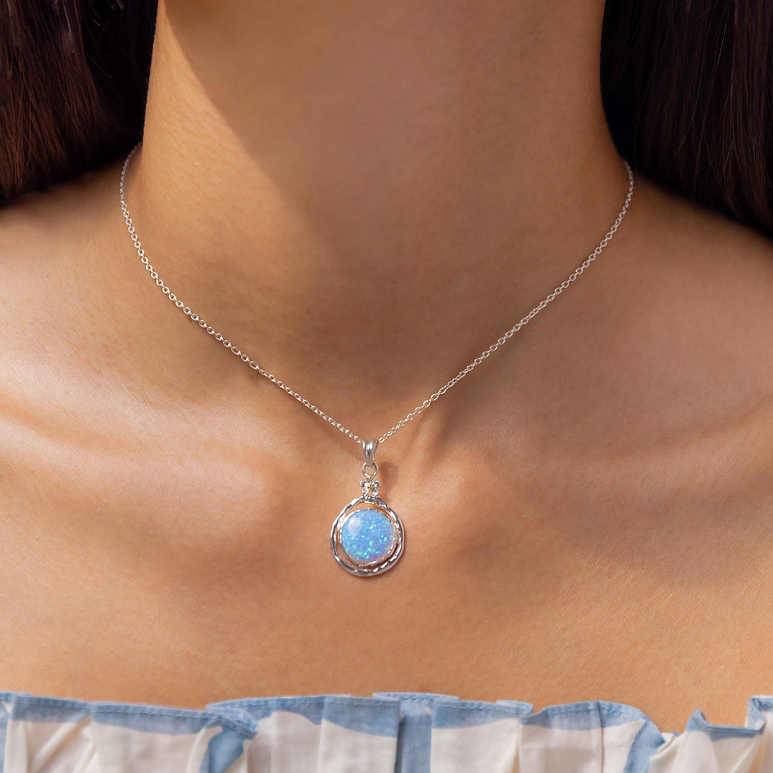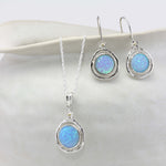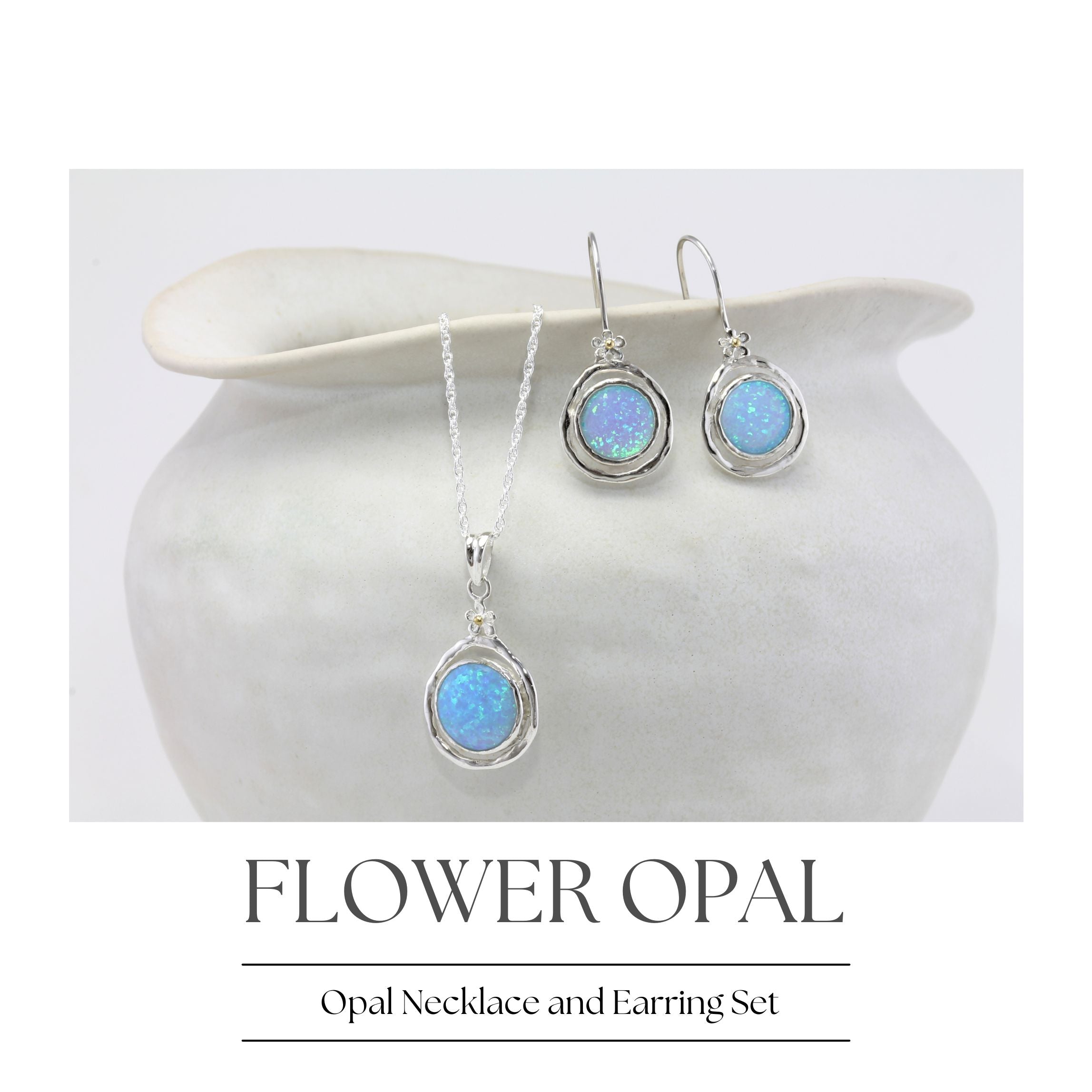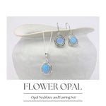 This beautiful Sterling Silver Opal pendant and earrings set is completed with a tiny flower detailing. The unique combination of Sterling Silver and the flowing design make this set a true statement of elegance and sophistication. We think it makes the perfect thoughtful gift for a loved one.