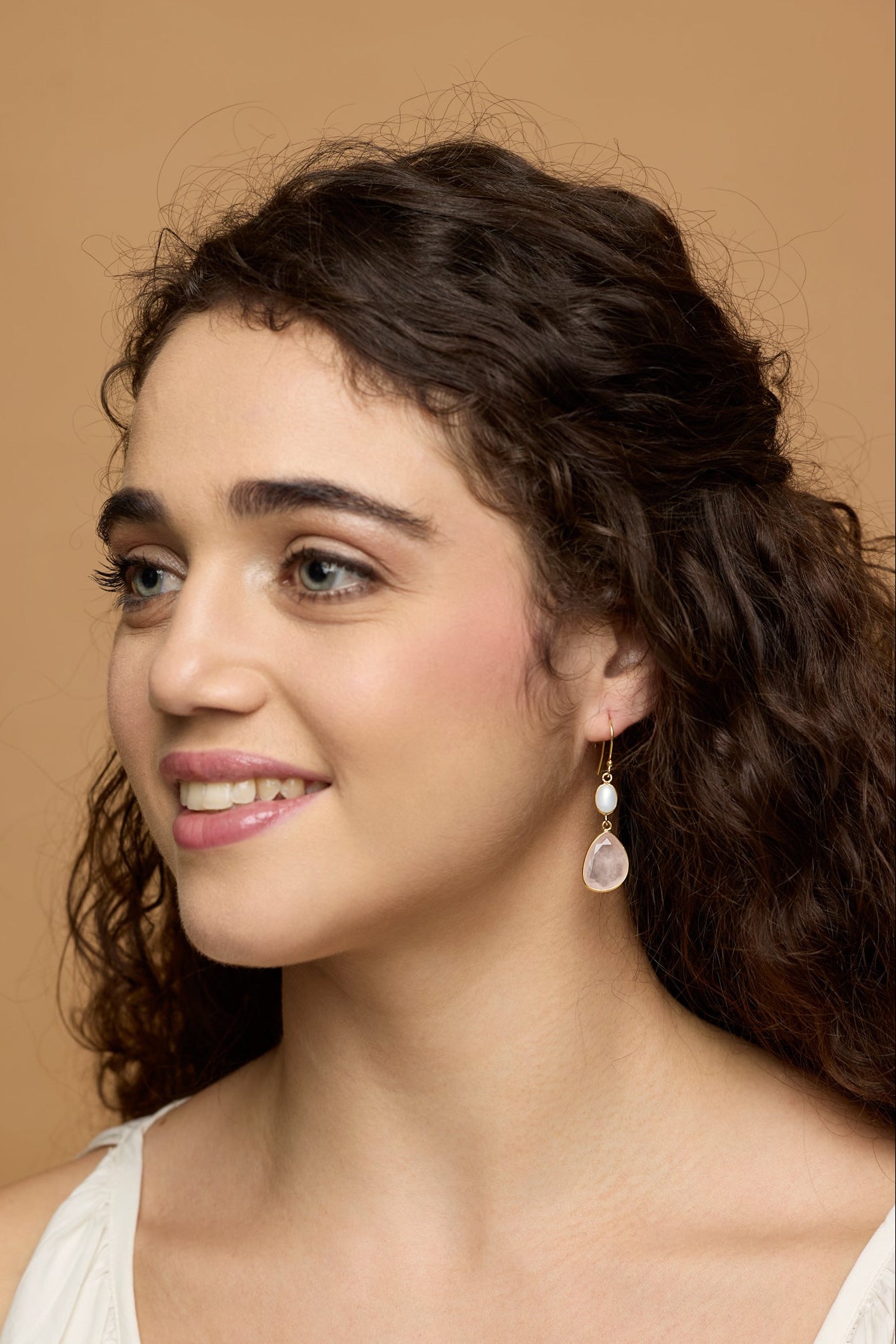 Gold Vermeil Pearl and Rose Quartz Drop Earrings