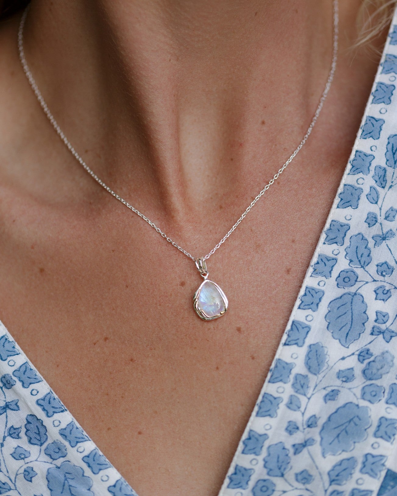 Handmade Rainbow Moonstone Droplet Pendant Necklace