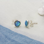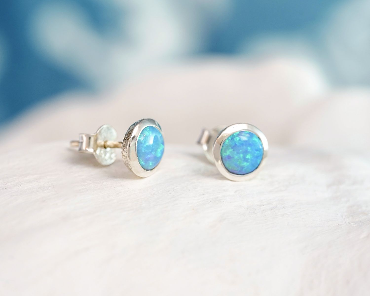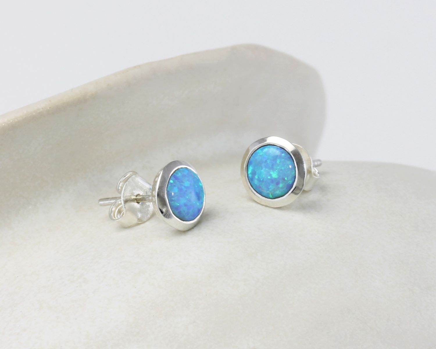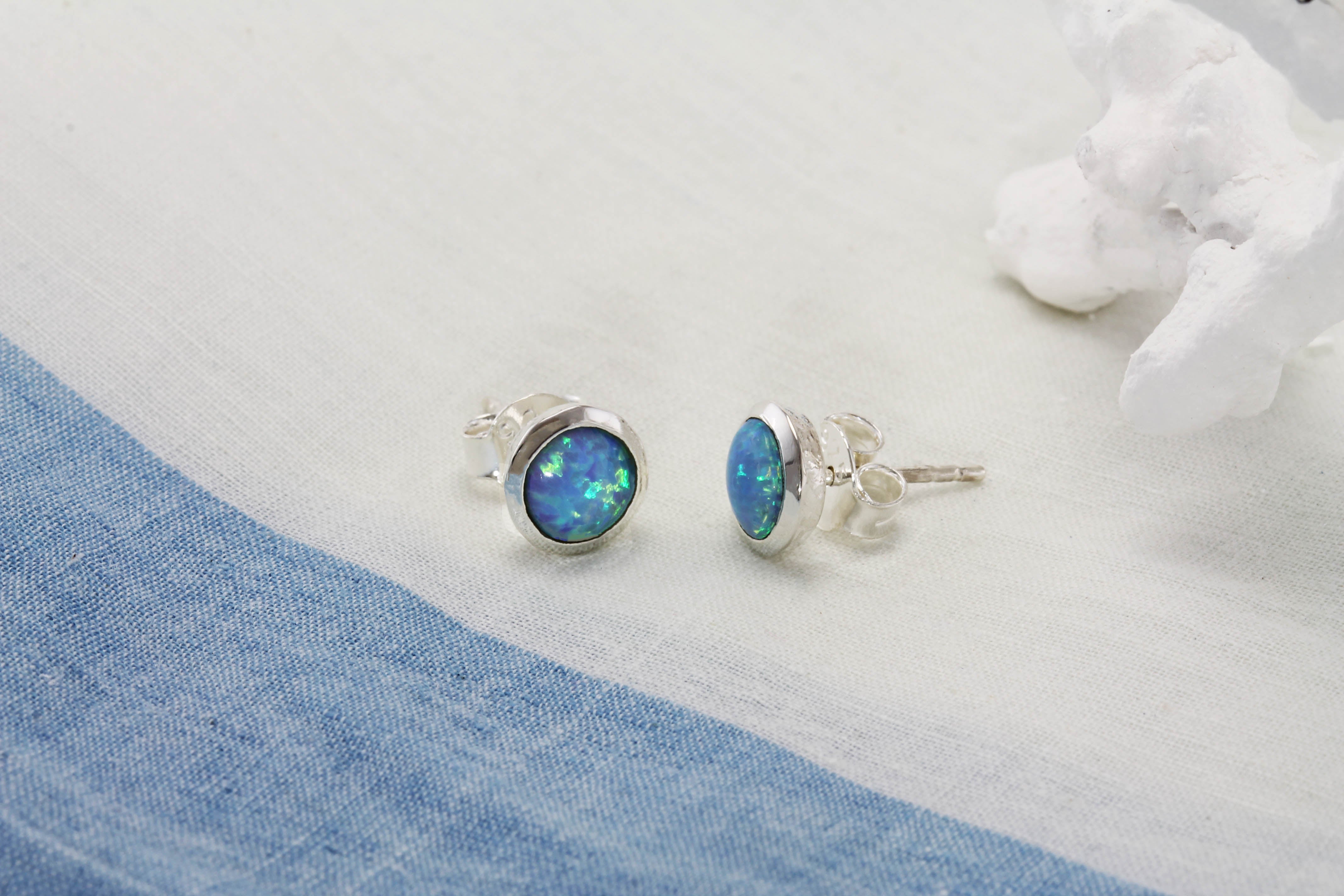 Handmade from Sterling Silver, these stud earrings are set with vibrant blue Opals and make a perfect pair for everyday wear. They are simple and classic.
