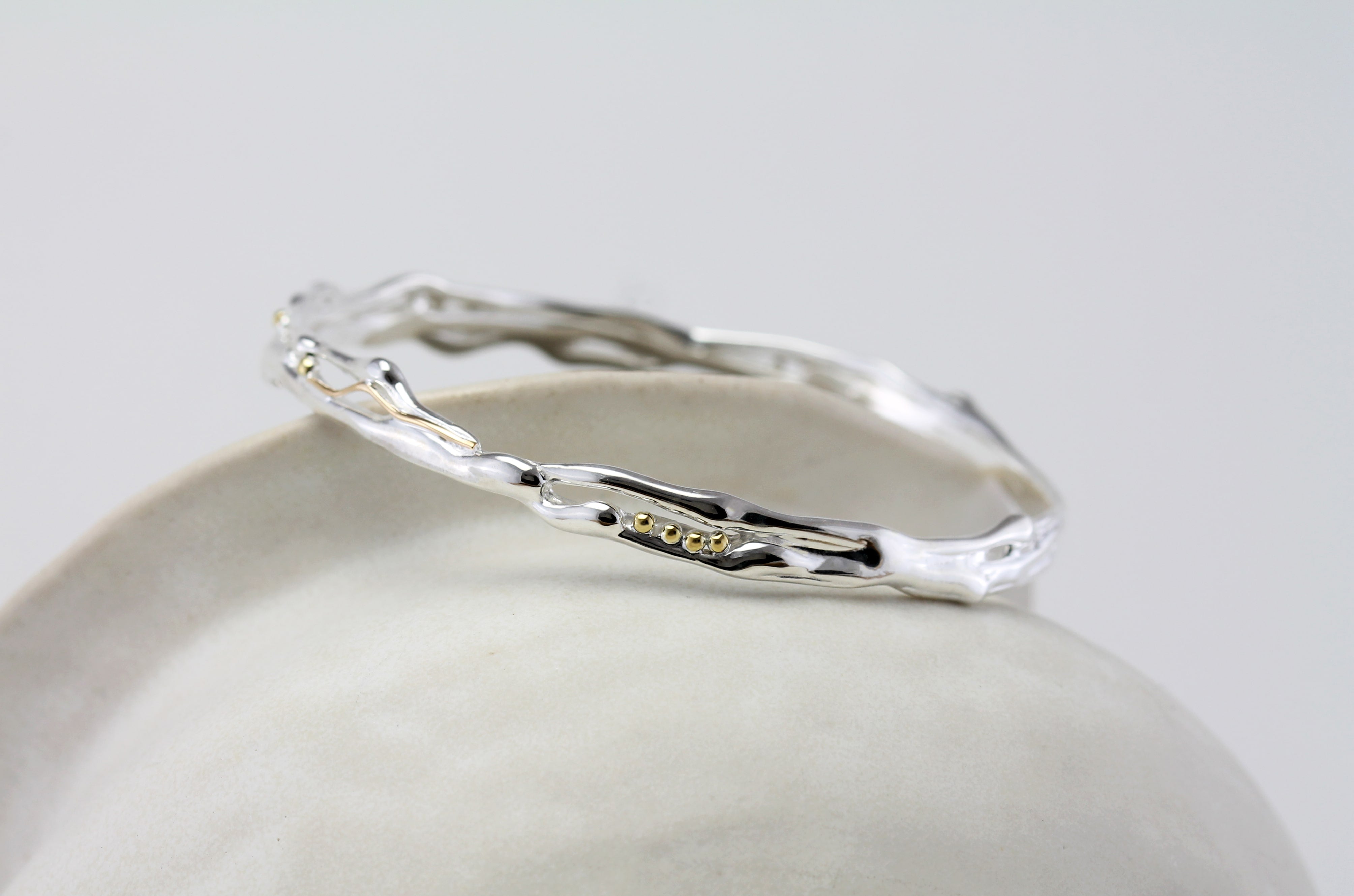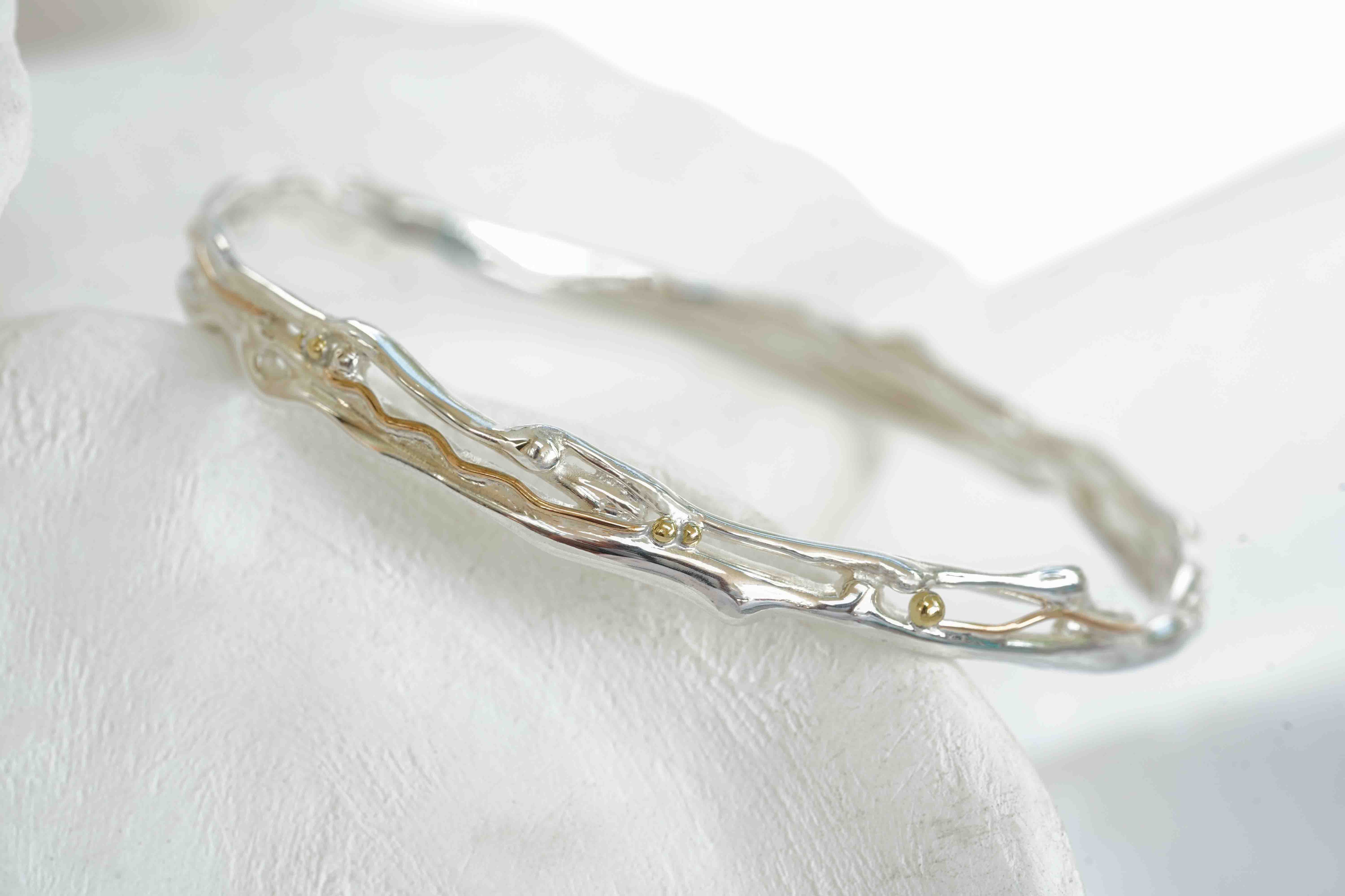 Organic Silver Bangle with Gold Details