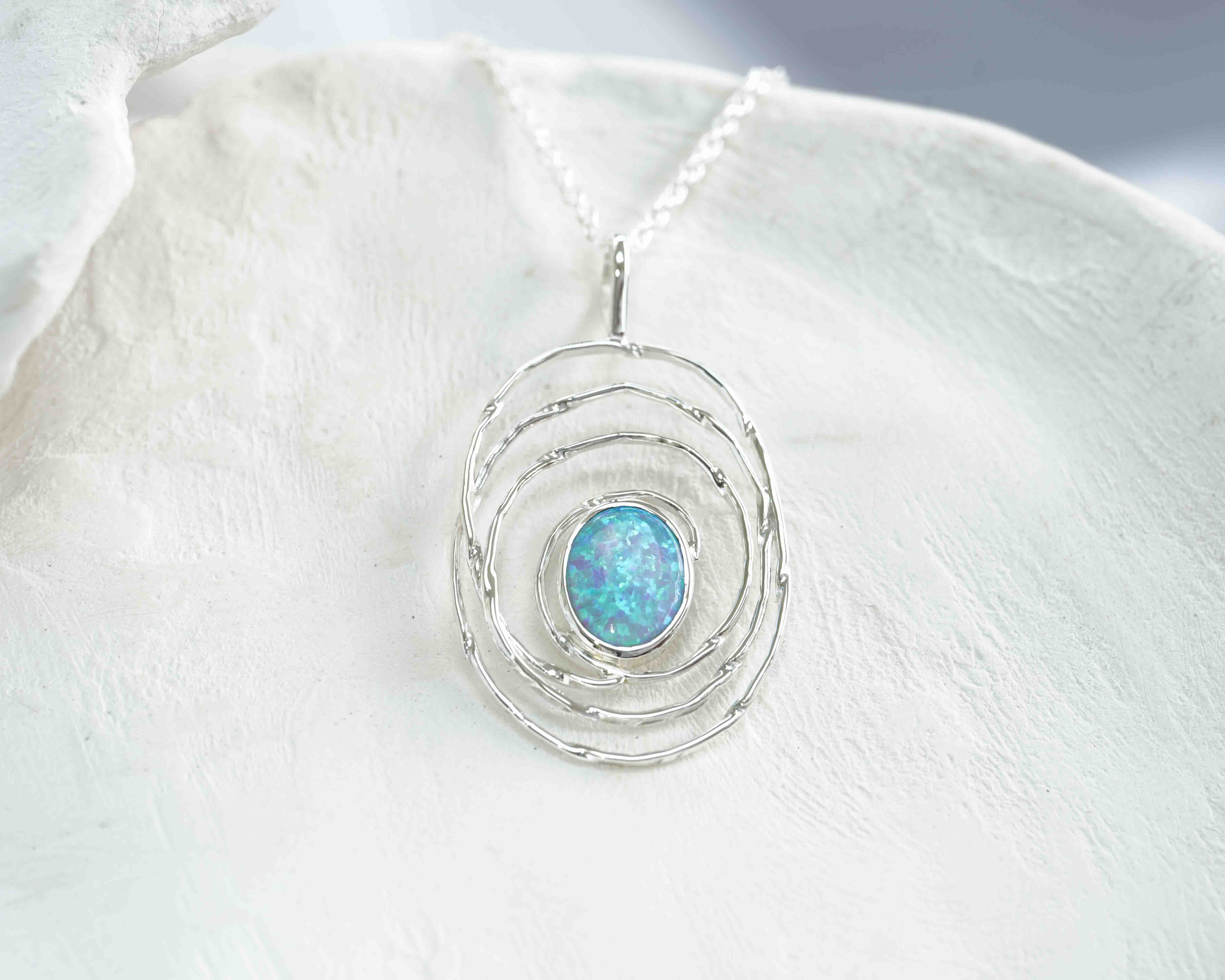 Oval Spiral Blue Opal Pendant