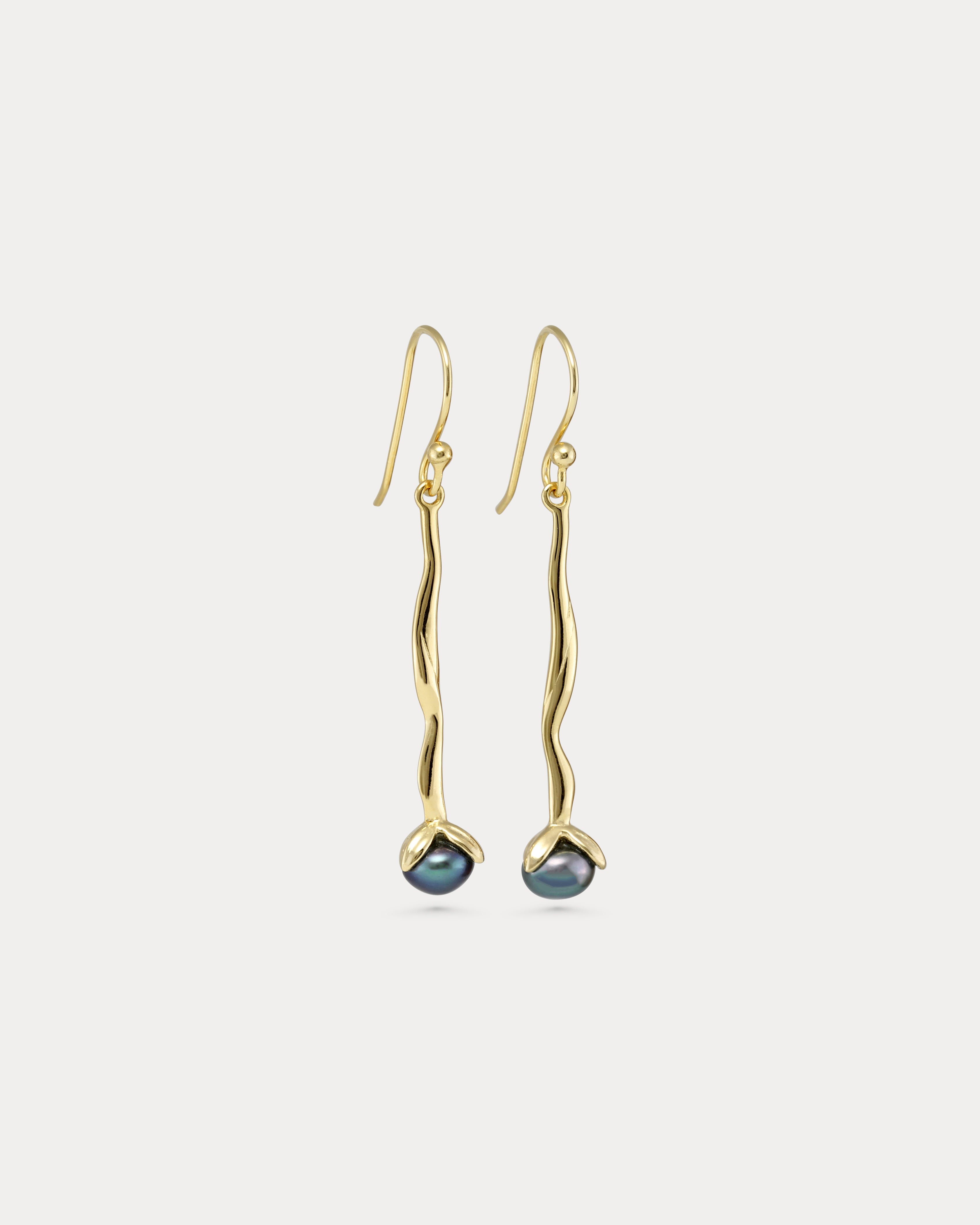 With an artisanal design, each colourful Pearl is held by three delicate Gold petals, which flow organically into the stem of the earring. The contrast between the iridescent black pearl and the warm gold setting creates a striking harmony. A timeless design with an organically sculptural feel, these earrings are perfect for both every day and special occasions.