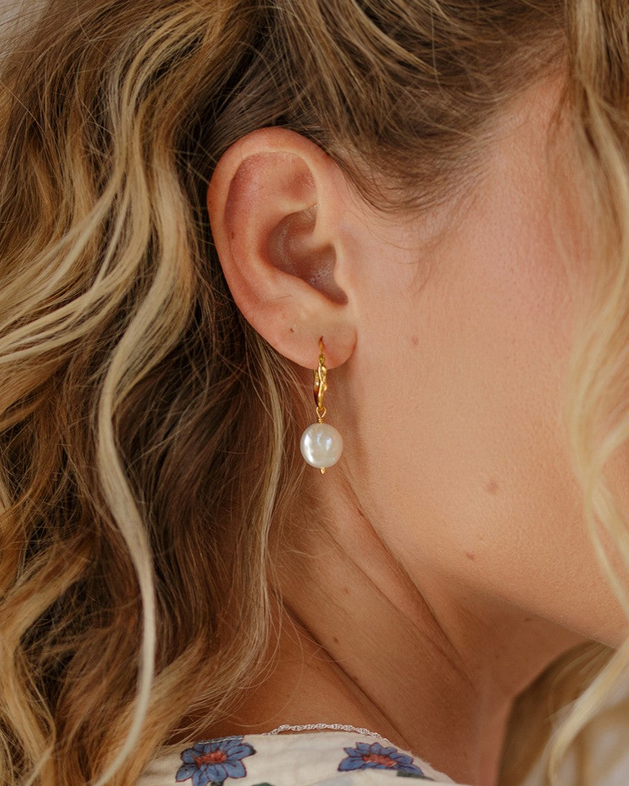These dainty Gold Vermeil hoops are crafted in a flowing design, and completed with a beautifully tactile round Pearl. The Gold and Pearl combination is classic, but made fresh with this unique design. The perfect summer accessory either stacked up or worn alone.