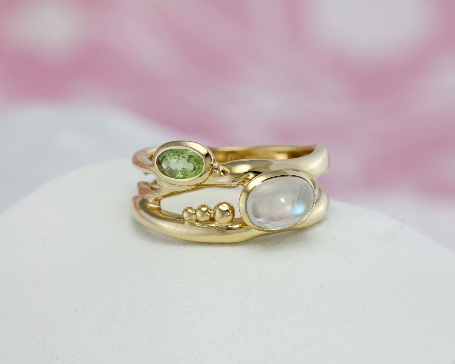 Peridot and Moonstone Gold Ring