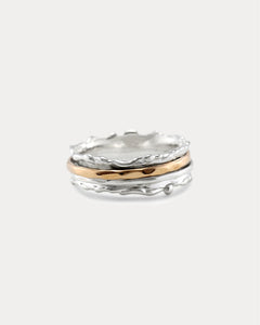 The repetitive spinning motion of this mixed metal ring instantly induces a sense of relaxation, allowing the spirit to find peace.