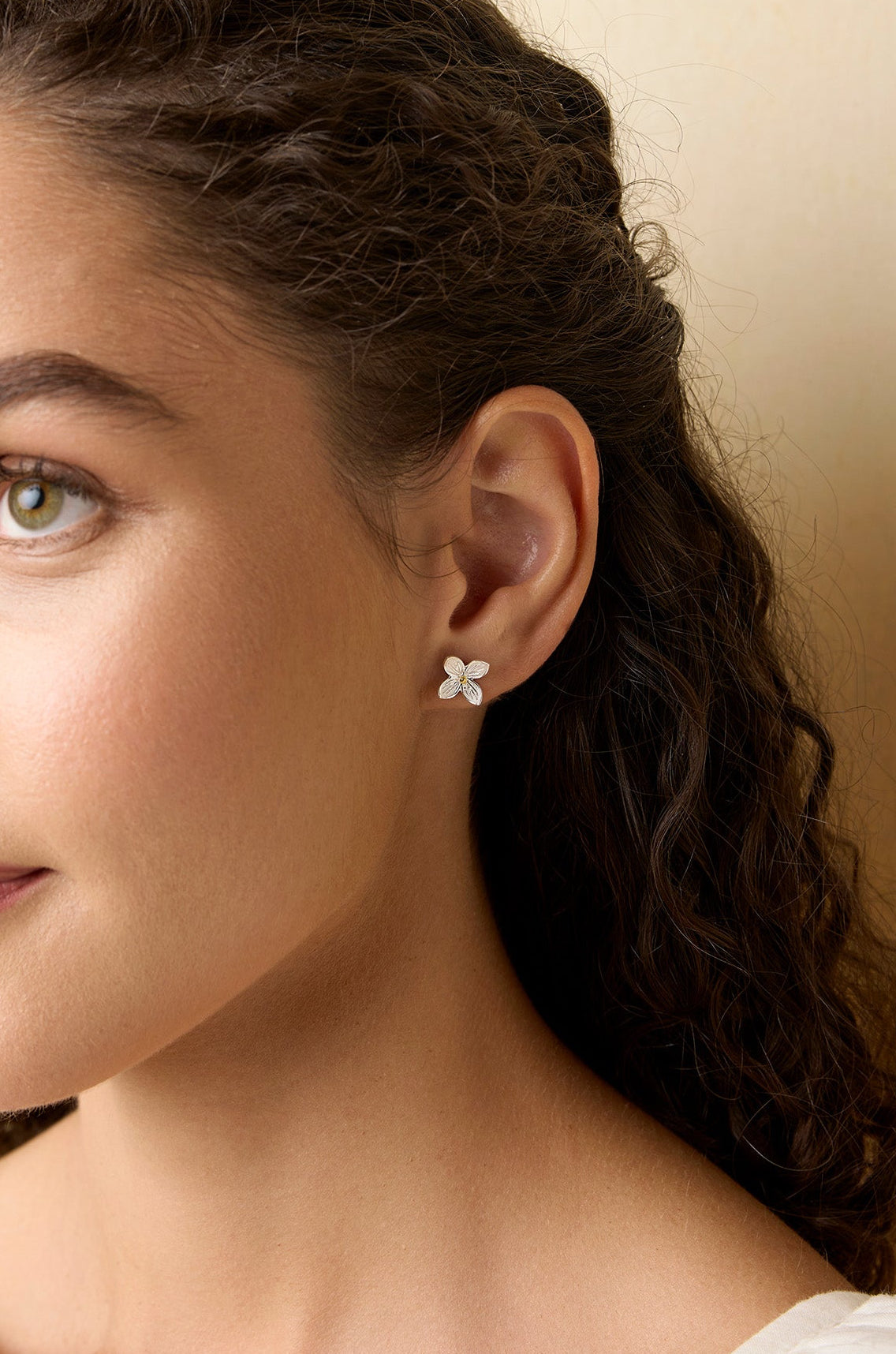 These dainty Sterling Silver stud earrings feature intricate petal details, with tiny gold pips in their centre. They are the perfect pretty pair for wearing everyday and for special occasions alike.