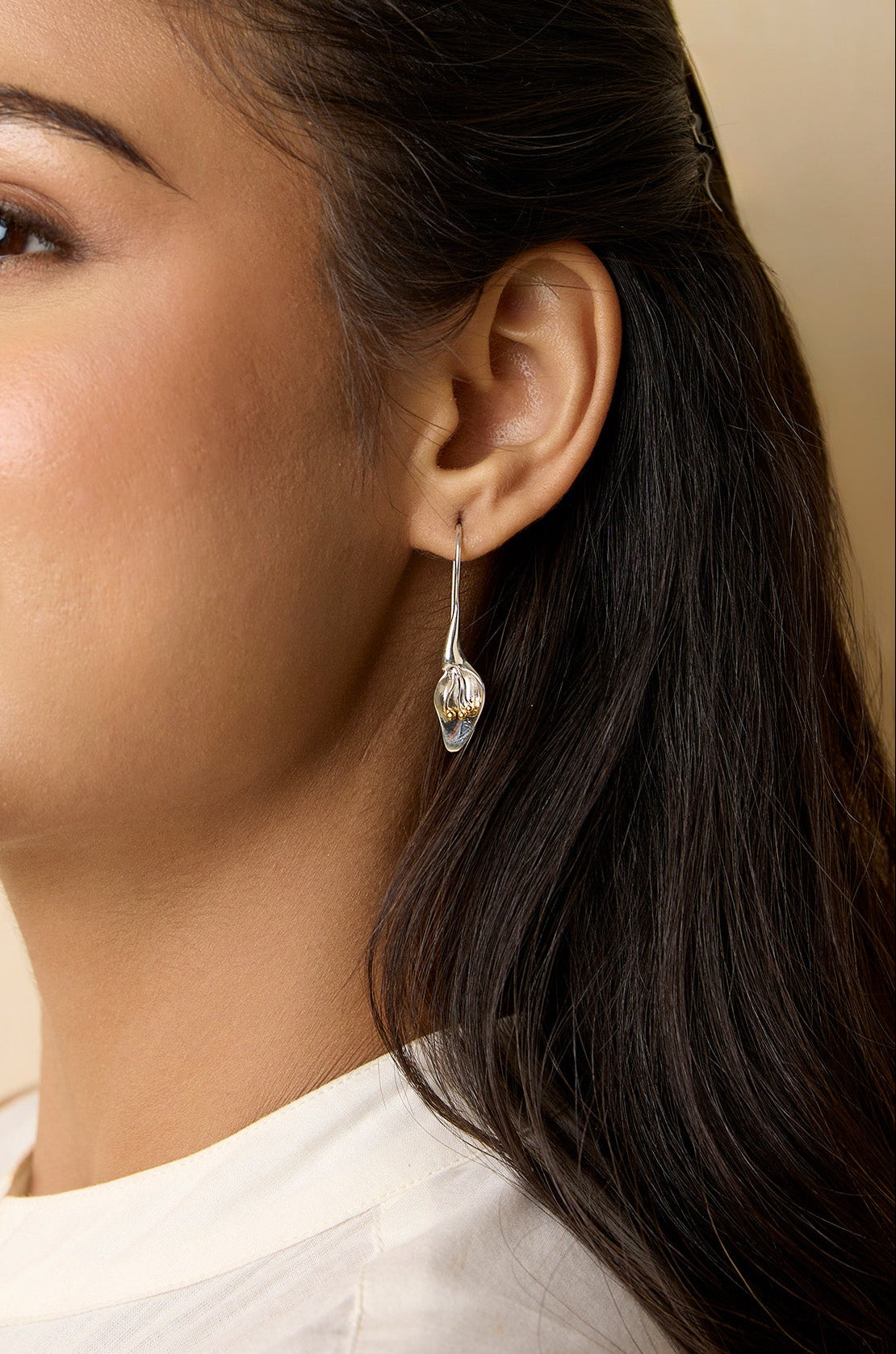 Make a statement with these elegant Lily earrings. Handmade from Sterling Silver, each lily earring is finished with 18KT Gold plated stamens for an added touch of luxury.
