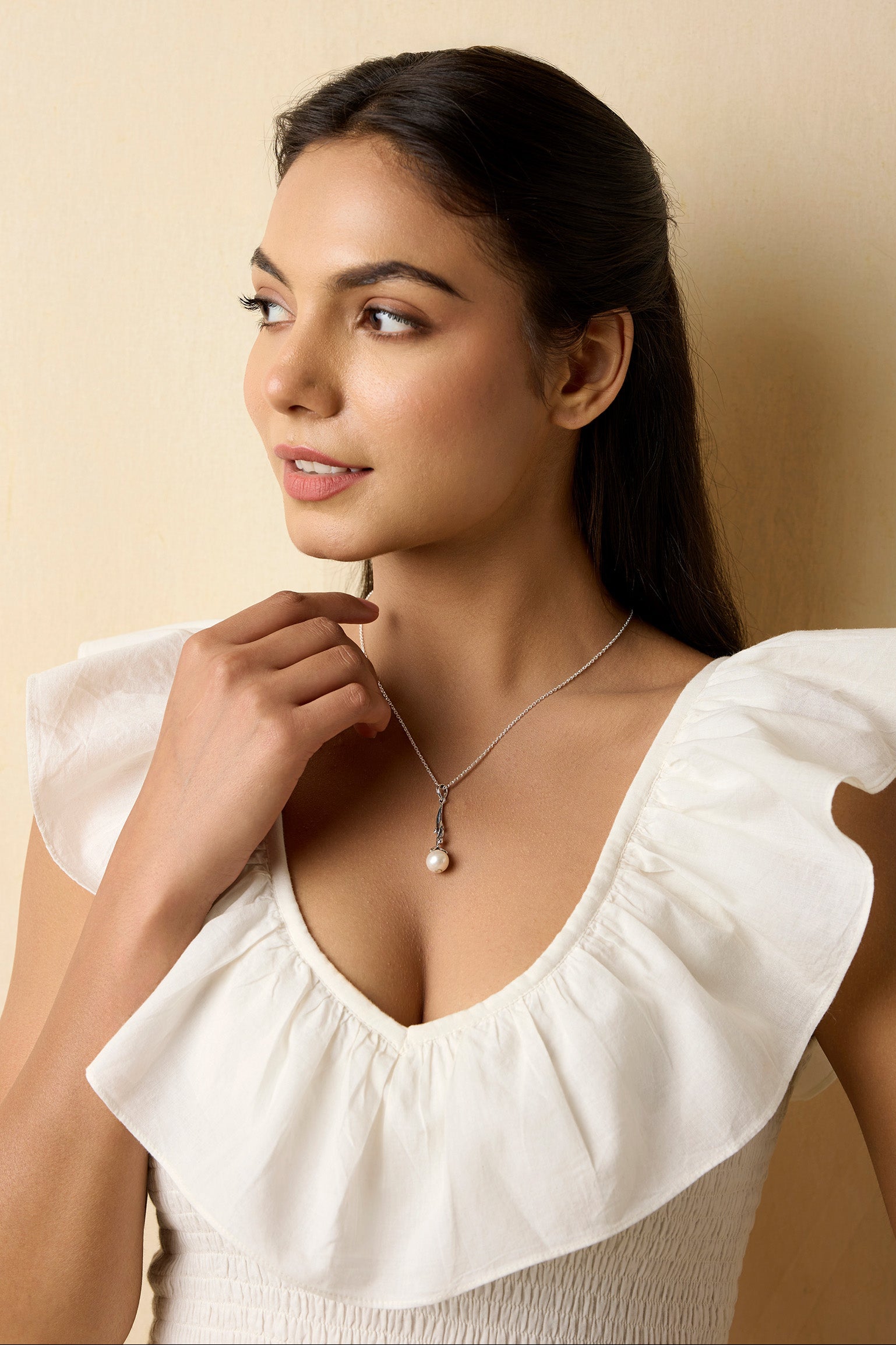 Handcrafted with Sterling Silver and set with beautiful Freshwater Pearl, this pendant is inspired by Art Nouveau with a touch of our own modern organic style.