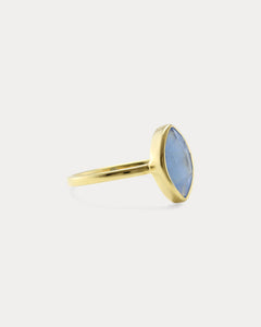 These 18KT Gold Vermeil hook earrings feature three Rainbow Moonstones and three Blue Chalcedony's in a teardrop cut, tumbling in delicate formation. They are the perfect pretty pair to elevate any look.
