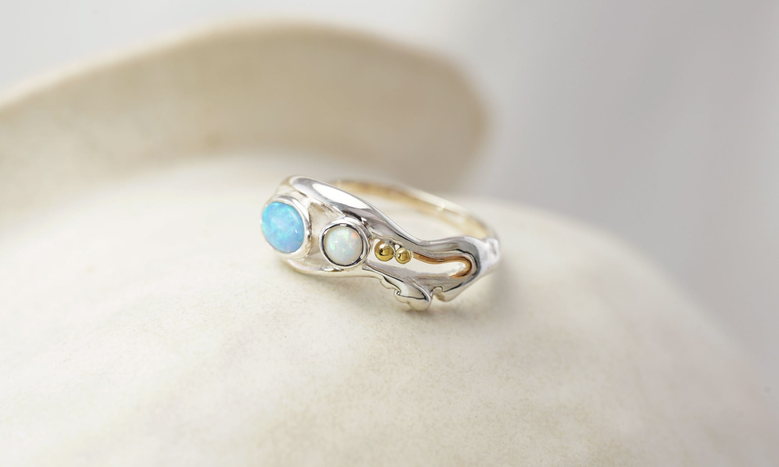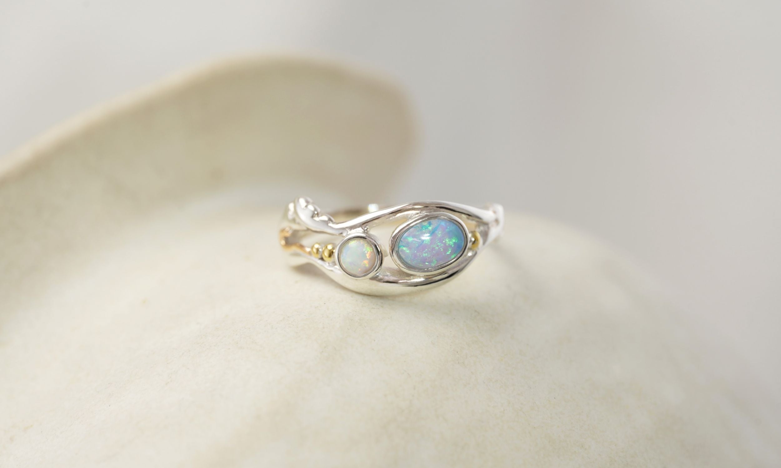 The Duo Sterling Silver Opal Ring with 14KT Gold Details